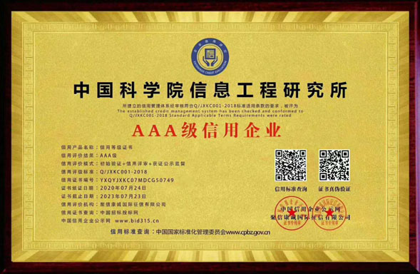 AAA企業(yè)信用評(píng)級(jí)網(wǎng)是從事企業(yè)認(rèn)證咨詢、各行業(yè)榮譽(yù)證書辦理的網(wǎng)站,認(rèn)證主要包含企業(yè)AAA信用等級(jí)證書、ISO體系認(rèn)證、服務(wù)認(rèn)證等認(rèn)證產(chǎn)品。出證快、價(jià)格優(yōu)。 企業(yè)AAA信用等級(jí)證書主要包含:AAA企業(yè)信用等級(jí)、AAA企業(yè)資信等級(jí)、AAA重合同守信用、AAA質(zhì)量服務(wù)誠(chéng)信企業(yè)、AAA誠(chéng)信經(jīng)營(yíng)示范單位、誠(chéng)信企業(yè)家、誠(chéng)信經(jīng)理人、AAA重質(zhì)量守信用、AAA重服務(wù)守信用、AAA誠(chéng)信供應(yīng)商等。我們將一如既往繼續(xù)努力,能夠和您合作是我們的榮幸!AAA企業(yè)信用評(píng)級(jí)網(wǎng)本著“誠(chéng)信、專業(yè)、優(yōu)質(zhì)、高效”的宗旨為廣大客戶提供全方位的認(rèn)證咨詢服務(wù),本公司愿與廣大的新老客戶真誠(chéng)合作、攜手共進(jìn)! |